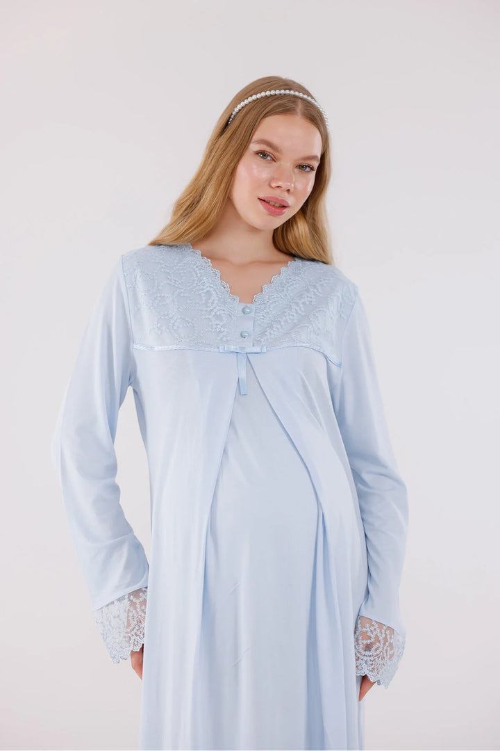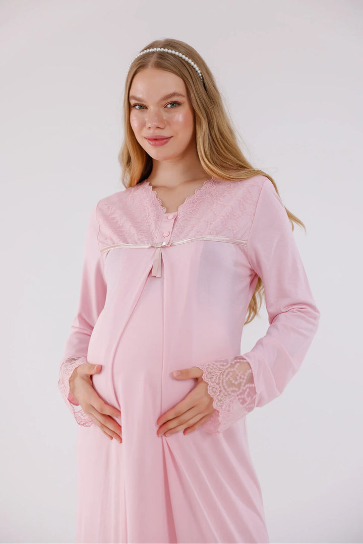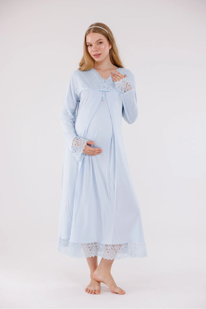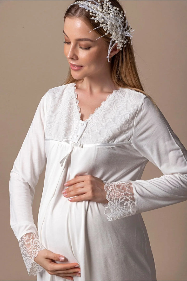 0743/ Guipure Detailed Maternity Nightgown and Robe