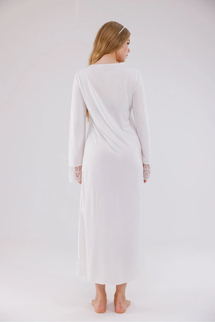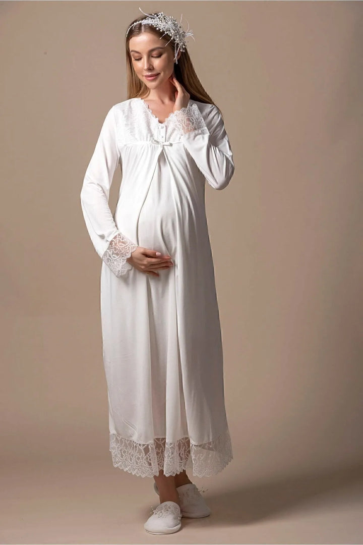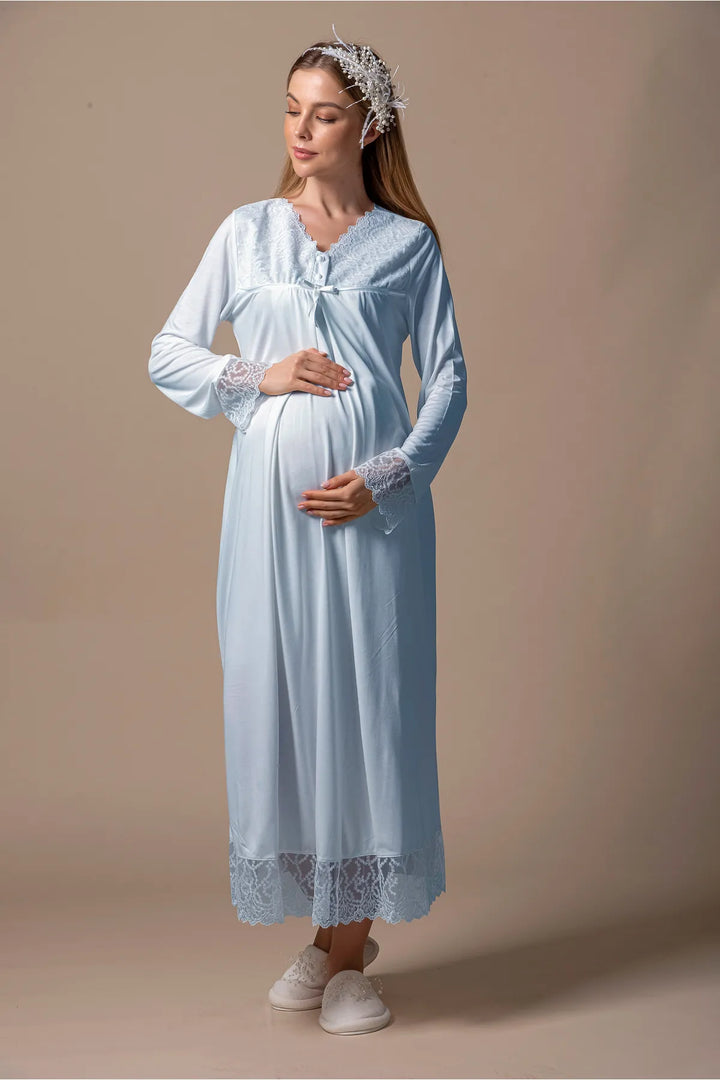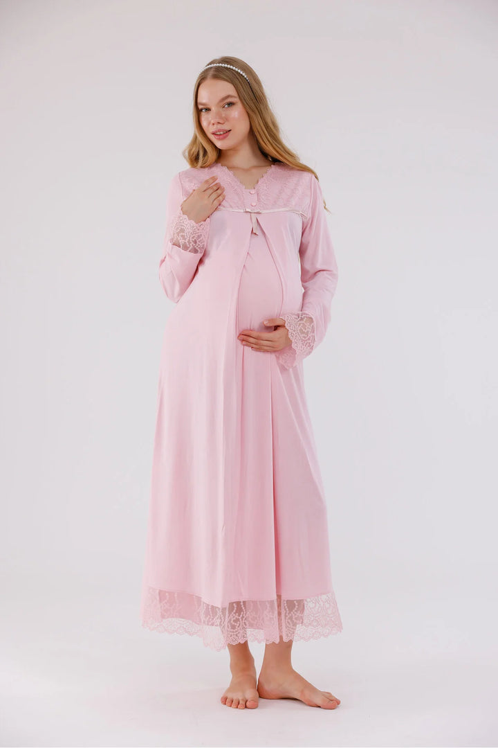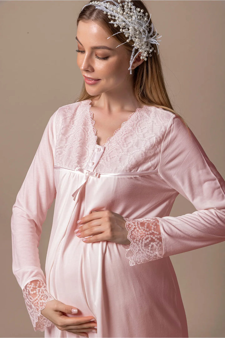 0743/ Guipure Detailed Maternity Nightgown and Robe